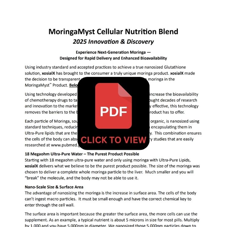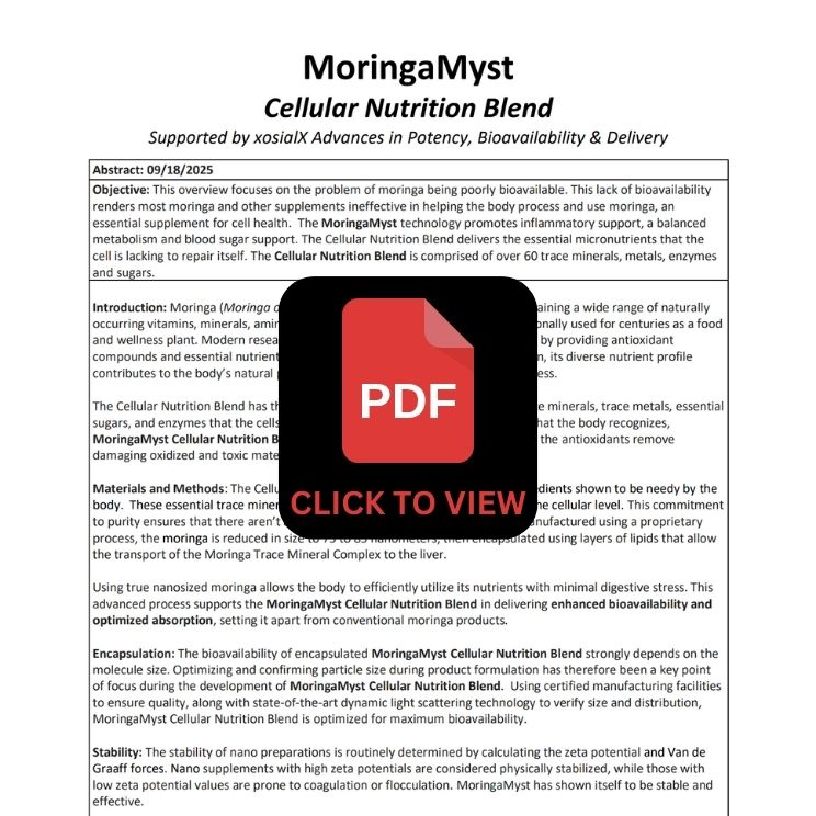 MoringaMyst delivers the most nutrient-dense botanical on earth directly to your cells with our proprietary Cellular Nutrition Blend. Utilizing advanced nano-myst technology, it supports fast and efficient absorption, helping to support balanced Metabolism, Blood Sugar Support, and Inflammatory Support.